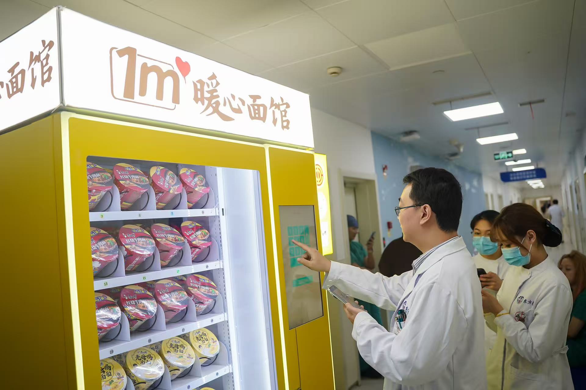 年后,暖心面馆持续拓展新的应用场景:落地上海市东方医院的“天使暖心面馆”、通过物资捐赠助力北京东交民巷报刊亭“爱心驿站”建设,正在守护着医护人员、环卫工人等“城市血管”里涌动的平凡个体。