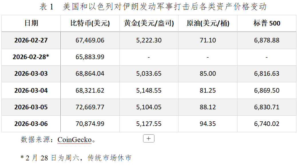 2月28日,美国和以色列对伊朗发动军事打击,中东地缘政治冲突骤然升级。这一地缘政治事件对全球金融市场产生了显著影响,也为观察加密资产在典型外部冲击下的行为特征提供了自然实验窗口。