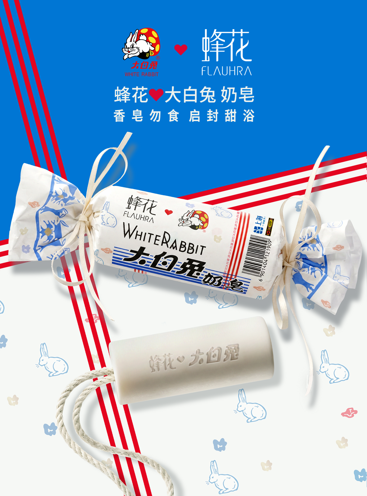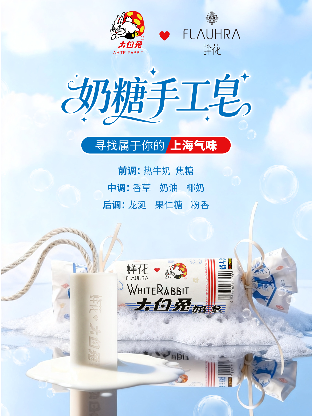 大白兔×蜂花FLAUHRA奶糖手工皂将逐步登陆全渠道及大白兔奶茶首店(南京东路371号)发售。更多联名惊喜与系列活动也将持续上线,敬请期待!