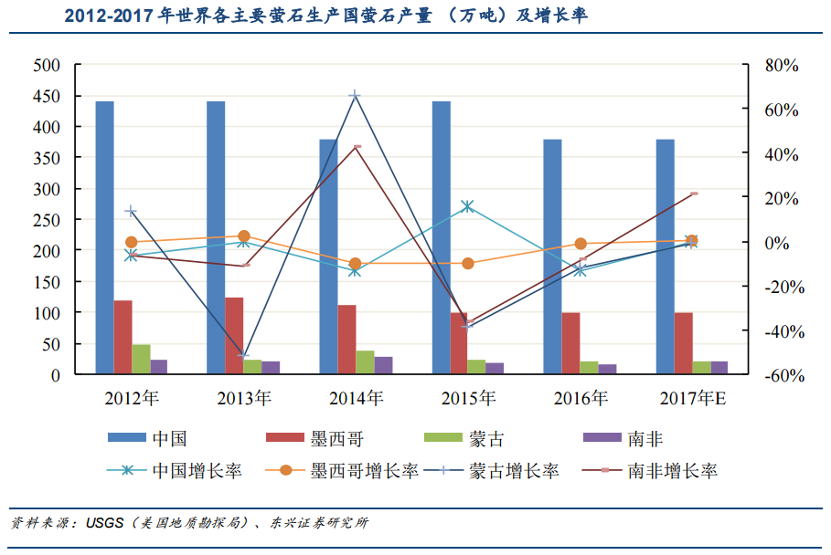 萤石资源稀缺、政府限产,环保高压压缩产量。萤石为不可再生资源,按现有披露我国萤石储量仅够开采11年,为全球回采比最低的国家;政府自2003年已明令禁止不再开放新的开采许可证,2016年又将萤石列入我国的的“战略性矿产名录”。此外萤石开采又属于高污染行业,逐渐加码的环保政策使得萤石产量供不应求。