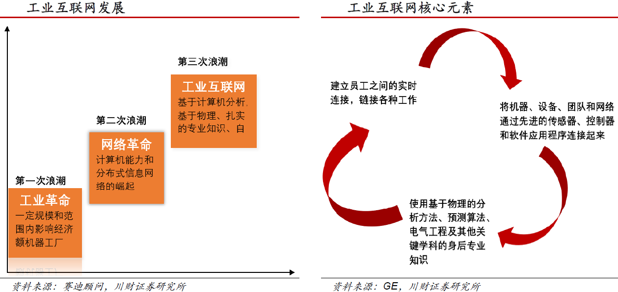 制造业面临着传统制造业产能过剩、企业生产成本不断上升(人力、环境、土地和融资等)、企业研发投入不足,技术和产品急需升级三个难题。借鉴美国、德国工业发展进程,川财证券认为,破解制造业的阿克琉斯之踵在于制造业需要与工业互联网深度融合。