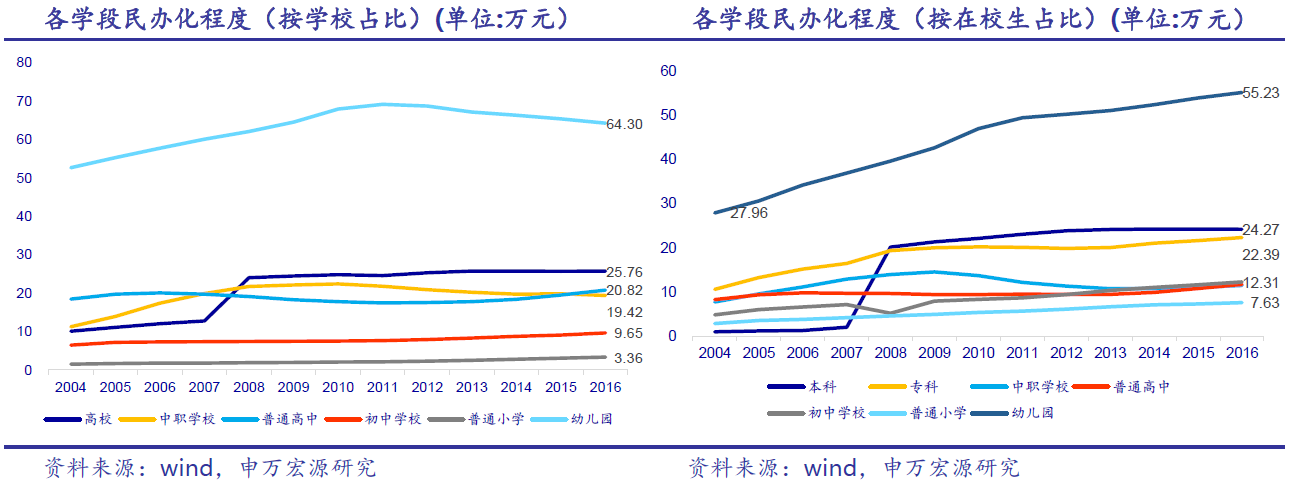 ①目前职教处于国务院第三次职教会议实施窗口期,进入提质增效周期,强调以市场需求为导向发展职教,首次明确企业办学主体作用,发展职教集团化办学;②落地保障措施完善,高技能领军人才经济待遇提高到高级管理人员级别,企业职工教育经费税前扣除限额从2.5%提高到8%,个税修正草案首提继续教育税前扣除;③民促法修法及实施条例明确非义务教育阶段学校资产可营利属性以及职教非学历培训的市场化监管,扫除教育资产证券化法律障碍。