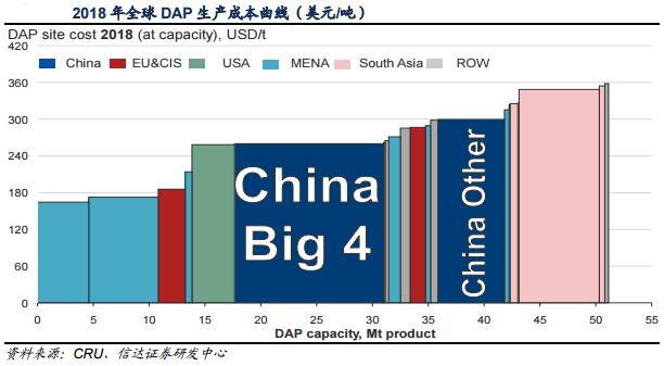 信达证券认为,中国的磷肥产能位于全球成本曲线的右侧,正在逐渐向边际成本逼近,未来国际供给压力大时将会有一部分出口受到冲击,磷肥出口可能会压缩100~200万吨的规模,下降到800~900万吨之间,也即国内磷肥产量维持在2900~3000万吨即可满足国内与出口需求,超过的话可能带来供给压力。虽然产量及出口压缩的绝对数量并不是特别大,但这是建立在当下国内磷肥行业80%以下低开工率的基础上的,行业如果要真正步入良性发展轨道,产能整合势在必行。