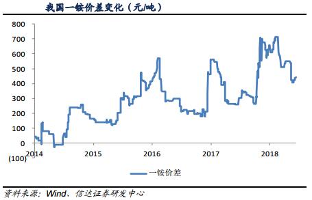 信达证券还指出,受磷矿整合以及沿江一公里搬迁等环保政策的影响,未来三年中国磷肥行业亦将迎来整合,其中一铵企业多分布在湖北与四川,中小企业较多,整合力度将强于二铵行业。目前,一铵行业整合已初见成效,2017年下半年以来,受磷矿整合以及环保趋严影响,众多一铵企业限产停产,四川一铵企业生产成本推涨,湖北龙头企业议价权凸显,一铵价差改善明显,2018年以来一铵平均价差为562元/吨,而2017年同期为386元/吨,上涨46%。