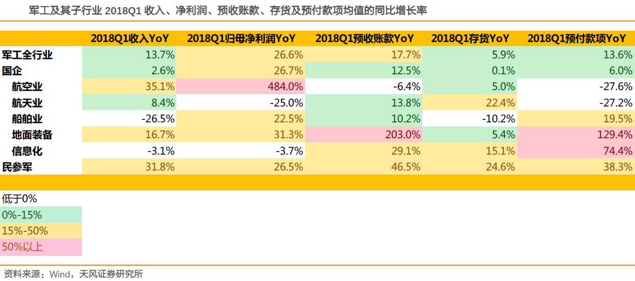 行业基本面边际改善下,东吴证券重点推荐上市资产完整度高的中航沈飞(600760.SH)、内蒙一机(600967.SH),建议关注中直股份(600038.SH)、中航飞机(000768.SZ)、航发动力(600893.SH),以及中航机电(002013.SZ)、中航电子(600372.SH)、中航光电(002179.SZ);2018下半年应重点关注军工集团资本运作进展,建议关注具有优质体外资产的上市公司中航机电、航天电子(600879.SH)、内蒙一机、四创电子(600990.SH)、国睿科技(600562.SH);民参军方面,应自下而上选取质地好、稀缺性强的标的,建议关注火炬电子(603678.SH)、旋极信息(300324.SZ)、星网宇达(002829.SZ)、耐威科技(300456.SZ)、景嘉微(300474.SZ)。