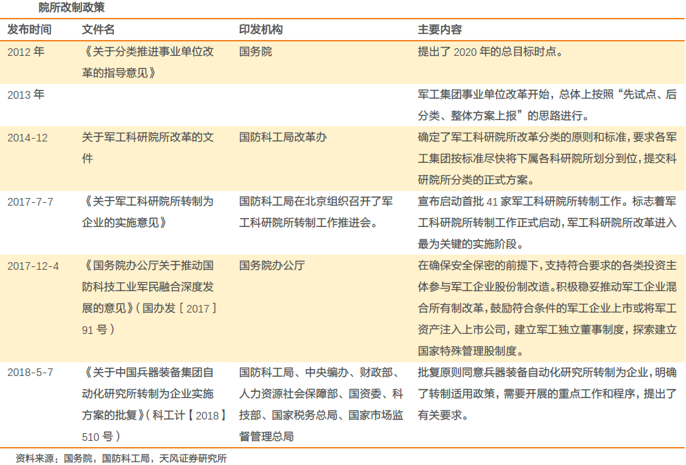 从改革方面看,关注军工集团资本运作推进2018年包括科研院所改制、定价机制改革、混合所有制改革等在内的军工领域改革将持续推进,国防科工局等八部门已批复中国兵器装备集团自动化研究所转制为企业,同时随着两会过后各央企集团领导班子调整到位,东吴证券认为2018年军工集团资产注入会重启和加速,从而带来二级市场的投资机会。
