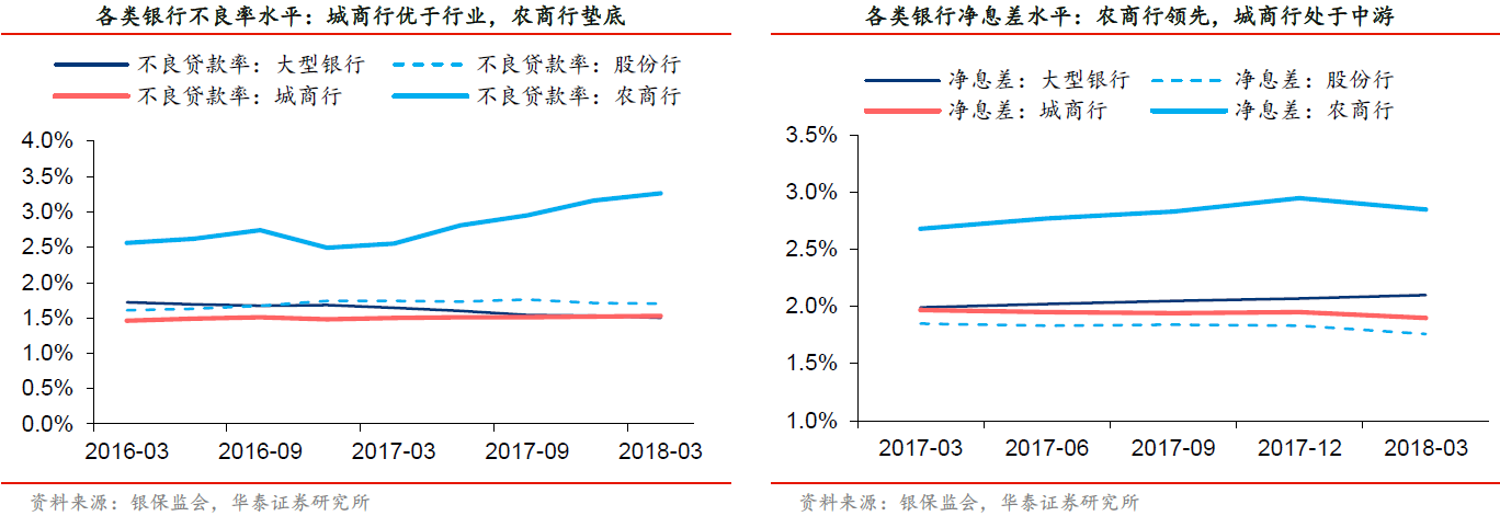 城商行和农商行分别形成了高资产质量、高息差的优势。华泰证券认为,区域性银行的主要特点有三:①经营范围集中于省内,与地方经济高度相关;②营业收入中利息收入的占比较高,对公业务特色鲜明;③当前上市比例尚低,融资渠道有待扩充。
