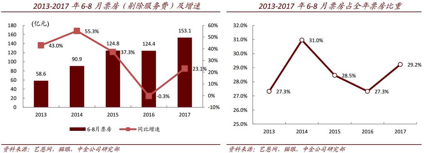 中金公司认为,2018年暑期档高质量的国产影片有望推动票房大盘稳健增长,提振市场对影视板块关注度及投资情绪。渠道端标的明确受益于电影大盘增长,建议关注横店影视(603103.SH)、上海电影(601595.SH)、中国电影(600977.SH)等院线公司,以及全产业链布局的光线传媒(300251.SZ)。内容端来看,多家上市公司均有参与暑期档旗舰作品,建议重点关注光线传媒、华谊兄弟(300027.SZ)、北京文化(000802.SZ)、中国电影。