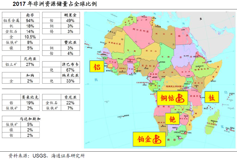 刚果金和赞比亚处于全球著名的铜矿带,是仅次于南美安地斯山脉和北美、墨西哥铜矿带的第三大资源集中地。而钴的伴生又是其一大特色。据USGS数据,刚果金、赞比亚合计拥有全球钴储量53%,铜储量6%。刚果金资源占整个矿脉带:铜约40%,钴约80%。矿脉带整体的钴铜比达到1:15,而刚果金的资源更占优,平均达到1:12。