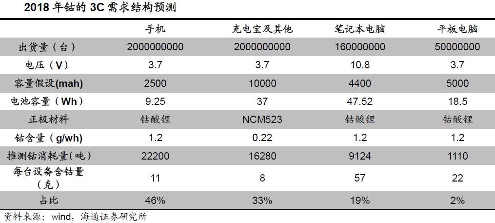 笔记本电脑和平板电脑是3C中去钴的重要突破领域。单台设备的含钴量在20~50克,按照当前原材料价格计算,单台设备原材料成本在30元以内,因此成本倒逼压力不大。动力电池应用需要长期的产业磨合。由于2017年钴价上涨100%的刺激,高镍电池的话题在2017年底和2018年初才引发产业界的讨论,实际落实到量产化需要的时间是以年度计算的。针对需求远景,用更远的角度考量,即使未来按照低钴化的8公斤单车耗量,如果按照年产1000万辆纯电动车计算,远景年需求钴量就在8万吨,而这样的增量,需要8个1万吨年产量的矿产匹配,当前看难度还是不小。