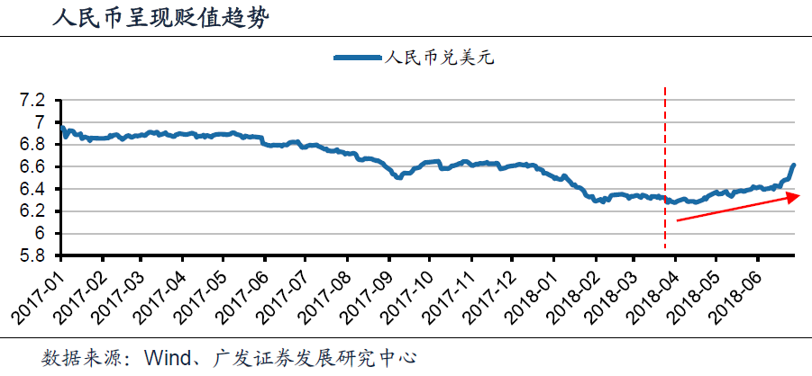 2018年4月以来,人民币兑美元持续呈现贬值态势。广发证券认为,全球地缘政治复杂多变,使得全球资产对于新兴市场配置普遍减少,体现为新兴市场货币普遍贬值,预计下半年人民币汇率或将持续波动。