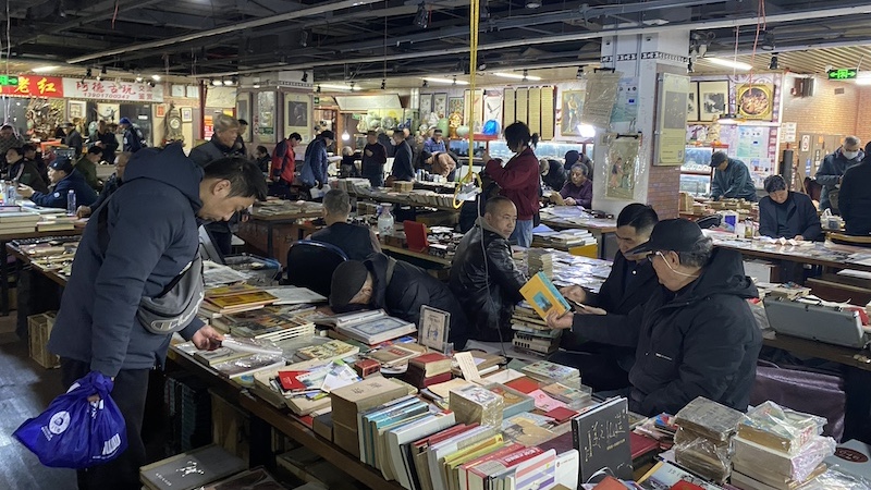 近日,城隍庙福民商厦新藏宝楼4楼的旧书市集恢复开放。虽然旧书市集最主要的读者群是老年人,也有不少年轻人来现场打卡。