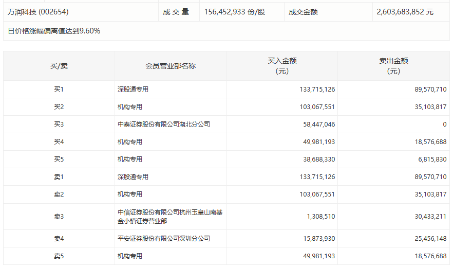 万润科技今日涨停,3家机构专用席位净买入1.31亿元