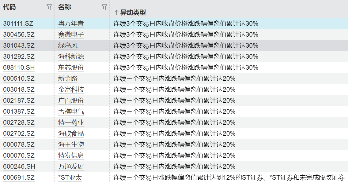 连续异动个股一览