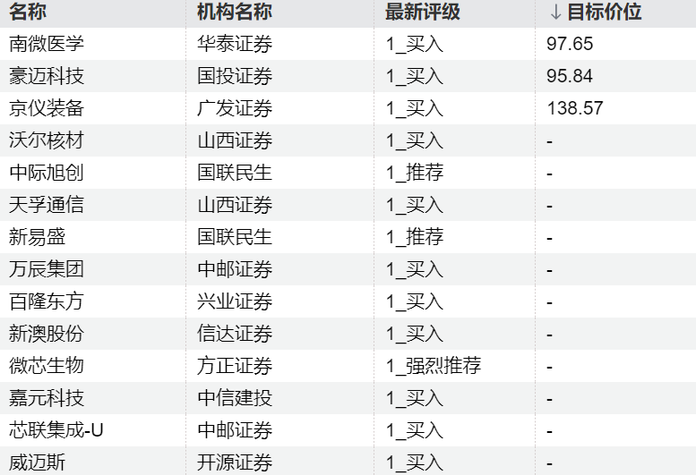 机构今日看好这些个股