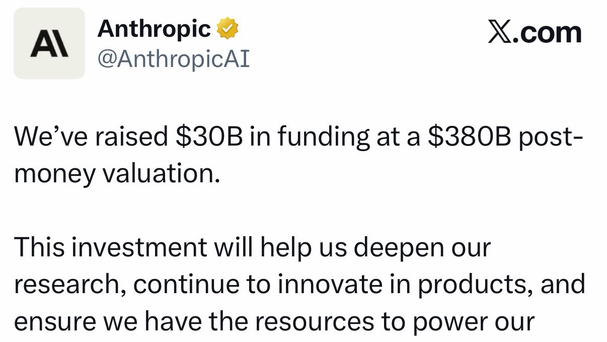 这轮融资后Anthropic估值也成功实现翻倍。