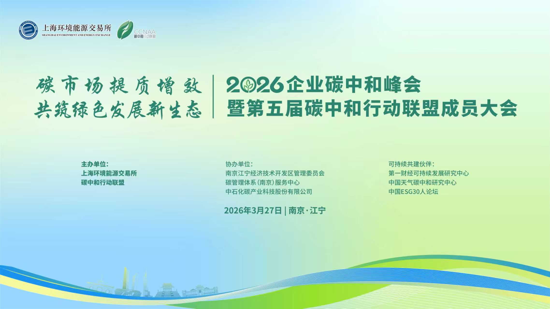 为了更好的协同推进降碳减污扩绿增长,加快经济社会发展全面绿色转型,现定于3月27日9:00在南京市举办2026企业碳中和峰会暨第五届碳中和行动联盟成员大会,本次大会将围绕政策解读、技术创新、市场机制、企业实践等核心议题展开深入探讨,同时分享标杆企业在绿色转型中的成功经验与创新实践,为与会各方搭建一个高效、务实的交流与合作平台。 本次大会由上海环交所、碳中和行动联盟主办。邀请政府领导、行业专家及在“双碳”领域取得相应成果的企业高管等建言献策。