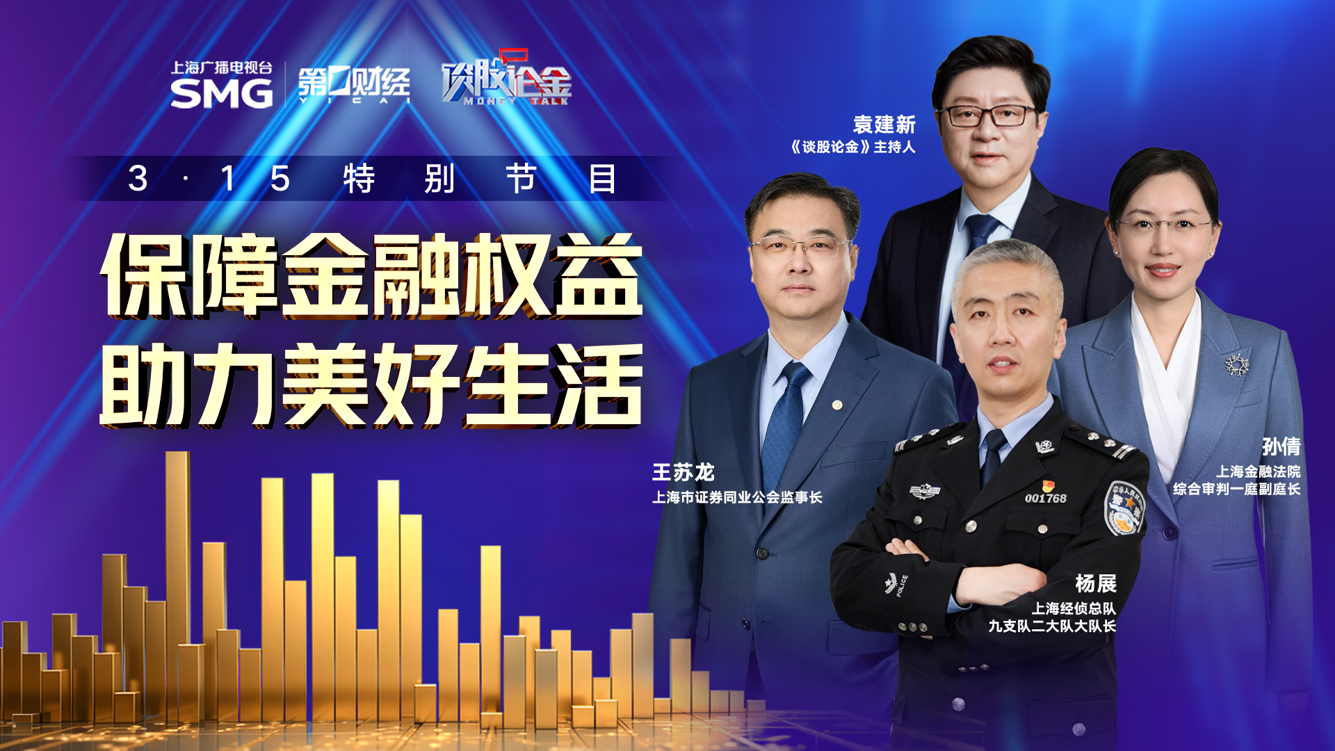 本期节目围绕“政策护航,培育合格投资者”和“保障金融权益,助力美好生活”两大核心主题展开探讨,特邀上海市证券同业公会监事长王苏龙,上海金融法院综合审判一庭副庭长孙倩,以及上海经侦总队九支队大队长杨展,从政策护航、司法保障和风险防范等多个维度,深入探讨如何切实保护投资者的合法权益。