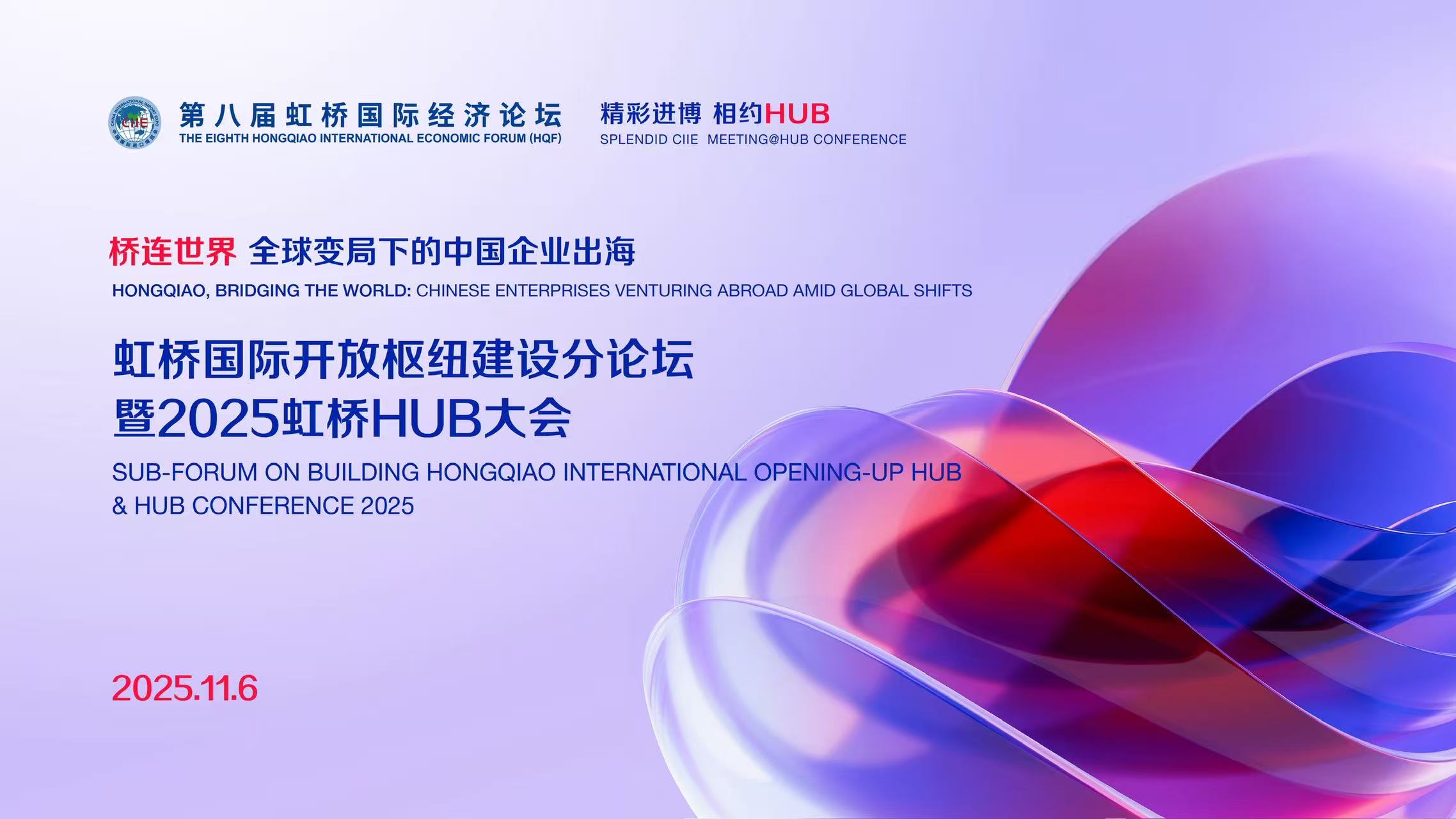第八届中国国际进口博览会期间,作为虹桥国际经济论坛的重要内容,虹桥国际开放枢纽建设分论坛暨2025虹桥HUB大会将于2025年11月6日在上海举办。分论坛由上海市人民政府、商务部共同主办,虹桥国际中央商务区管委会承办,将围绕“‘桥’连世界:全球变局下的中国企业出海”的主题,邀请各相关领域嘉宾分享真知灼见,致力打造引领中国企业新一轮“走出去”进程中的思想策源高地与实践交流平台。
