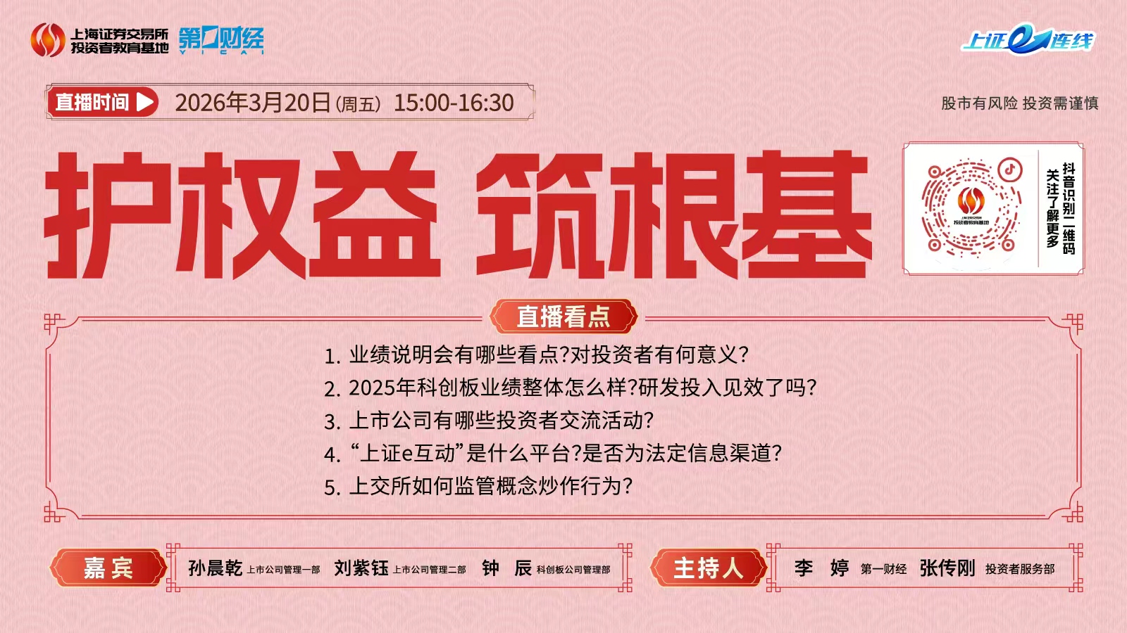 在中国经济迈向高质量发展、新质生产力加速培育的关键时期,资本市场与实体经济的融合愈发深入。科创板作为支持“硬科技”企业的主阵地,通过制度创新持续激活科技创新动能。如何精准把握政策红利?如何跨越上市过程中的合规与风控门槛?本期陆家嘴金融沙龙特邀科创板专业服务机构、已上市企业及拟上市企业代表,围绕政策解读、合规风控、上市申报等维度展开深度对话,为拟上市企业提供全景式指引。