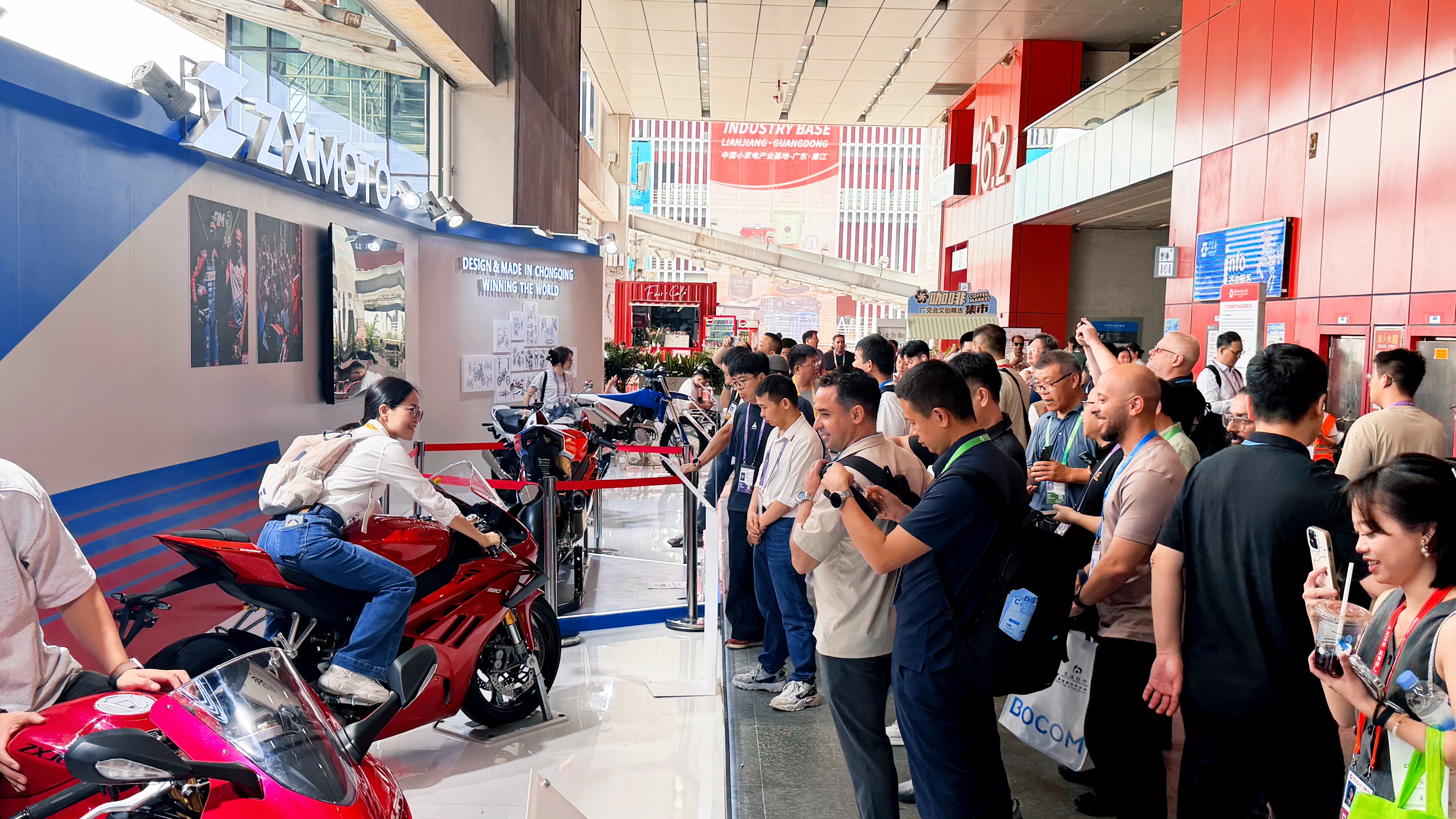 张雪机车首次亮相便成为焦点,第一财经记者在139届广交会现场发现,参展首日展台已聚集了数千人围观,上百位海外客商问询。记者从展台负责人处了解到,张雪机车性能对标国际一线品牌,但售价仅为对方的七到八成,性价比优势突出,将布局欧洲、美国、加拿大、东南亚以及南美洲等区域的高端市场。多位采购商表现出浓厚兴趣,认为中国摩托车的质量、价格和性能都极具吸引力,现场已决定采购!直击展会,一览全知!