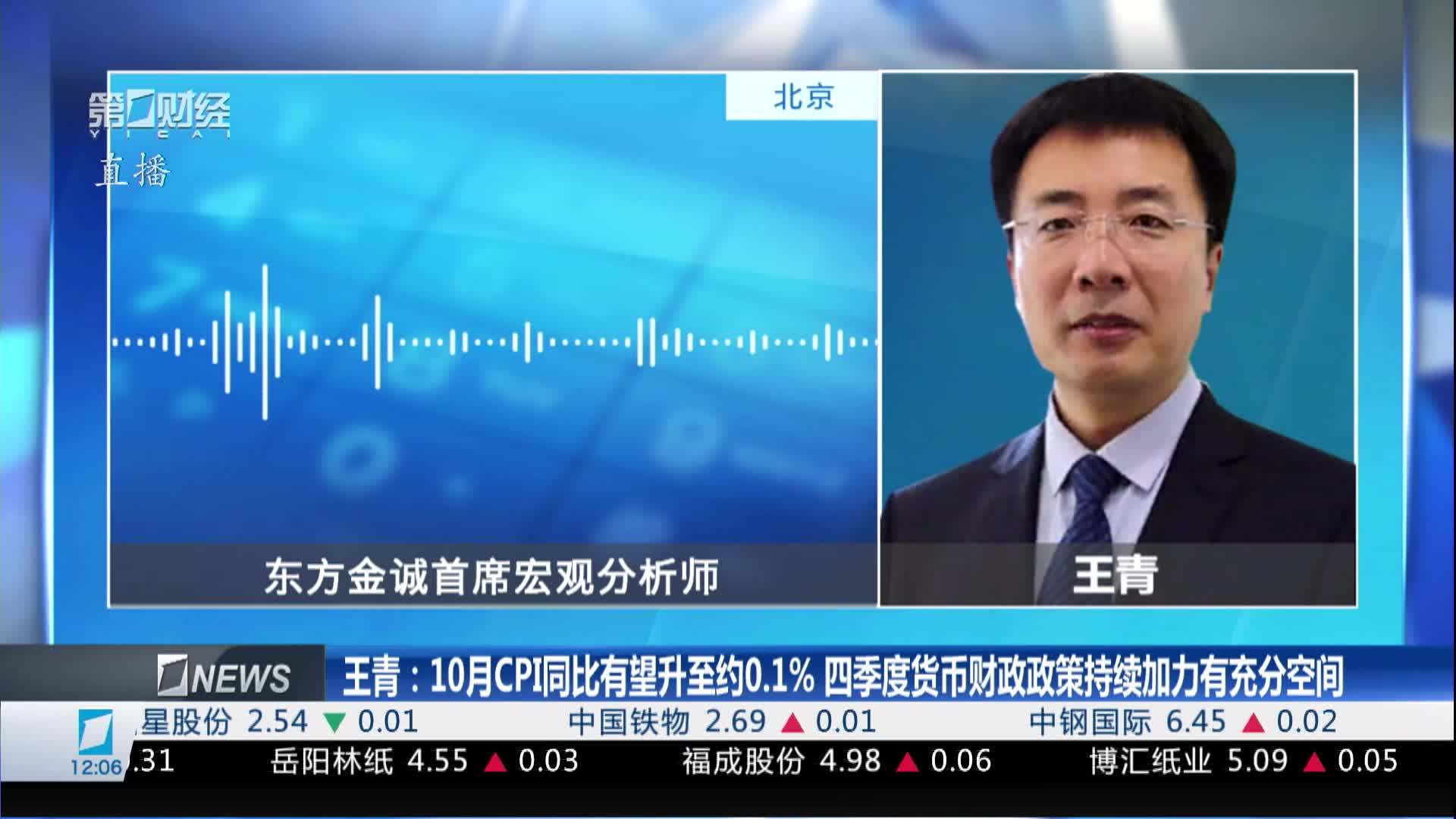 王青:10月CPI同比有望升至约0.1% 四季度货币财政政策持续加力有充分空间
