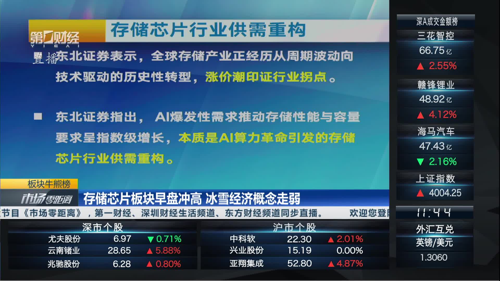 存储芯片板块早盘冲高 冰雪经济概念走弱 | 板块牛熊榜