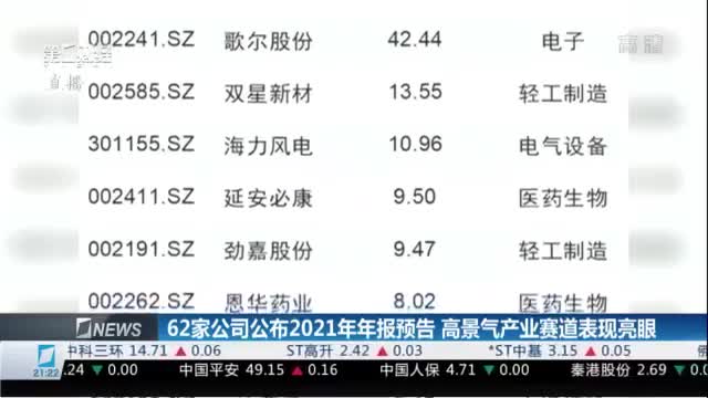 62家公司公布2021年年报预告 高景气产业赛道表现亮眼
