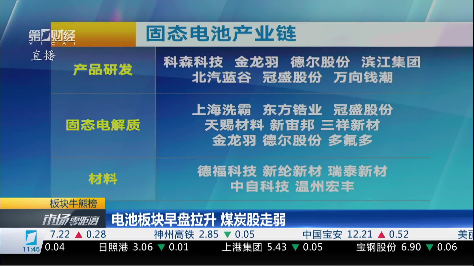 电池板块早盘拉升 煤炭股走弱|板块牛熊榜