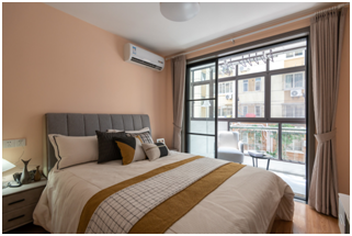 联动式移门将主卧和阳台分隔开,但不影响主卧的采光。