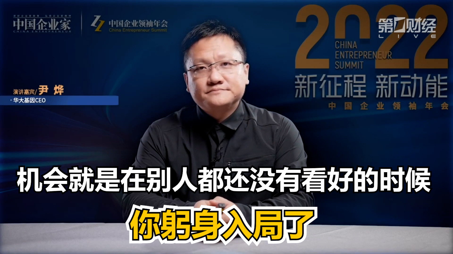 12月11日,华大基因CEO尹烨在2022年中国企业领袖年会上发表演讲,他在谈到“什么是机会“时表示,机会就是在别人都还没有看好的时候,你躬身入局了。他认为,“有的时候所谓成功只不过是长久的去坚持正确的事情,你内心相信的事情,并经历时间的检验。大部分人是因为看见才相信,而少部分人是因为相信,而最终看见,希望创业者保持乐观的心态。”点击视频,一探究竟。