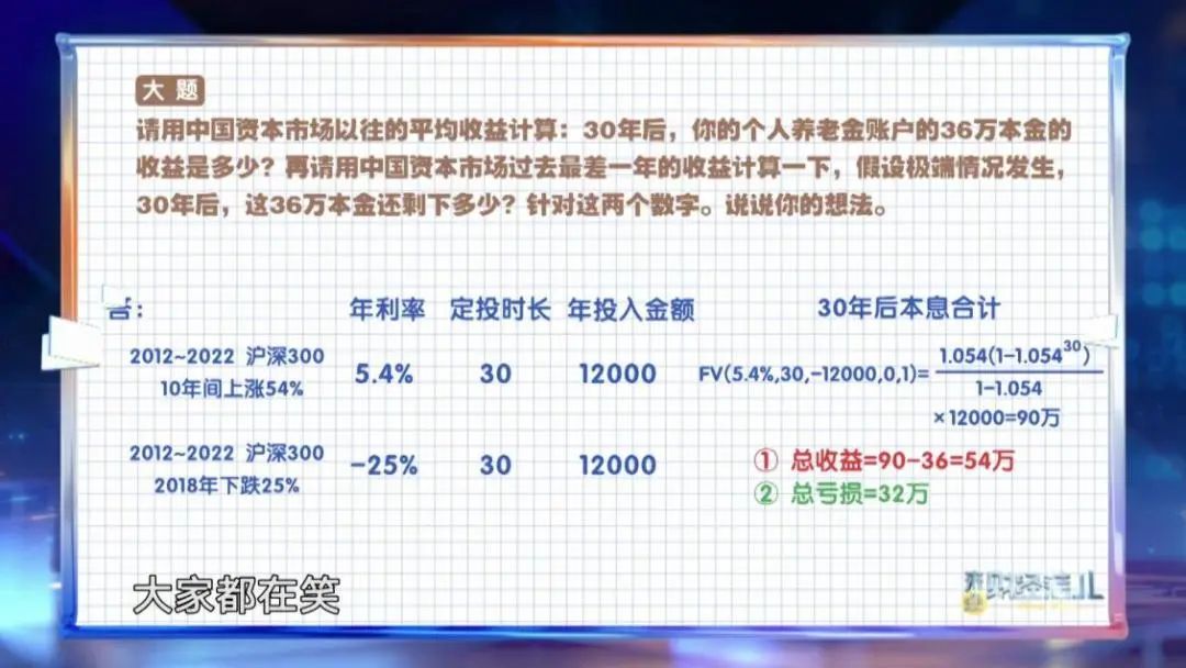 节目现场所有人都笑了,说明这种假设仅给大家展示一种理论上的可能性,实际上每年都亏四分之一这种极端可能性微乎其微。