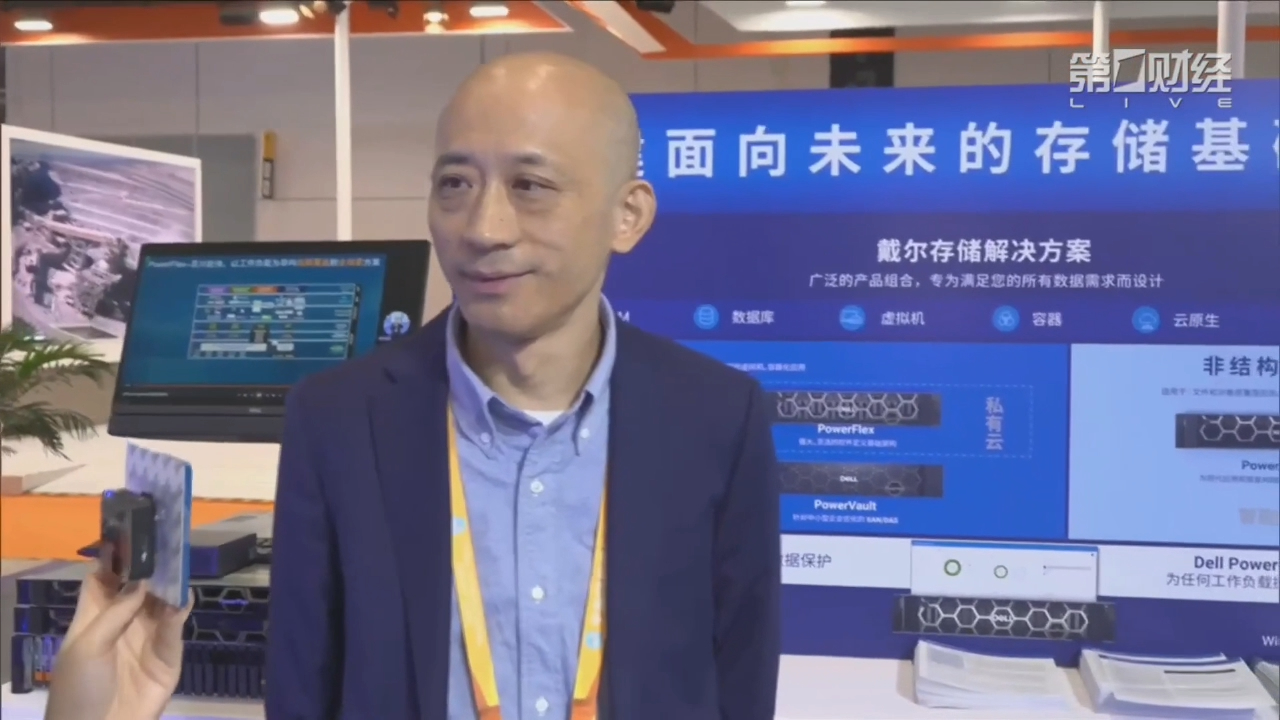 11月5日,在第八届进博会上,戴尔科技集团大中华区信息基础架构解决方案事业部核心客户及服务器业务资深总监席与琛向第一财经介绍戴尔带来的明星产品。