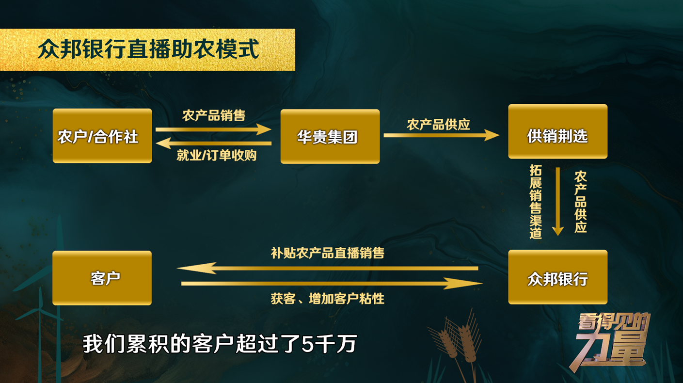 众邦银行董事长程峰:我们也在积极探索,“左手放款、右手带货”这个新的模式,帮助涉农客户一端解决产品销售的问题,另一端解决资金短缺的问题。