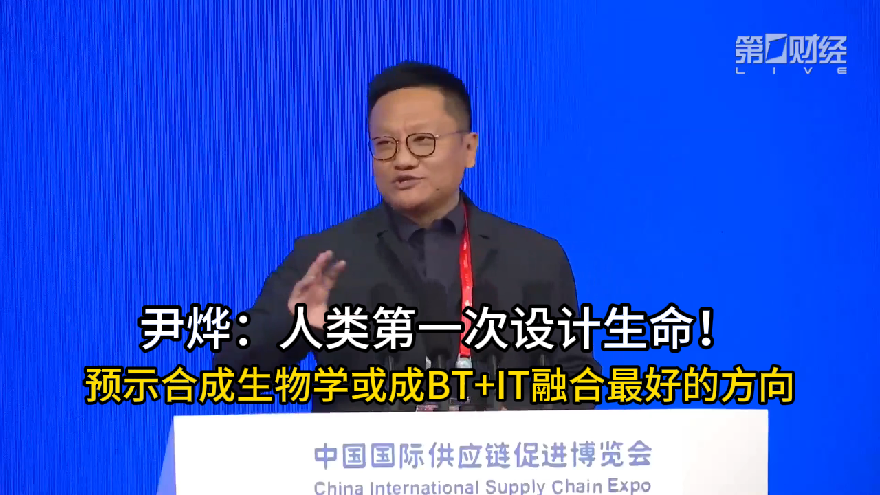 11月29日,中国国际供应链促进博览会开幕式暨全球供应链创新发展论坛召开健康生活专题论坛,华大集团首席执行官、执行董事尹烨表示,人类第一次完整的合成了酵母染色体,里面1200万个剪辑全部由多国科学家联合设计,这算是人类第一次设计的生命,预示着可能合成生物学会成为未来BT+IT(生物技术+信息技术)融合最好的一个方向。