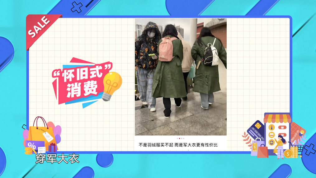 这个冬天,军大衣走红。网络上“不是羽绒服买不起,而是军大衣更有性价比”的新闻冲上热搜;今年双十一,抢黄金的主力从“中国大妈”变成了“中国年轻人”;在上海的一些社区,年轻白领带着饮料瓶、零食罐、“零拷”洗衣液“怀旧式消费”。