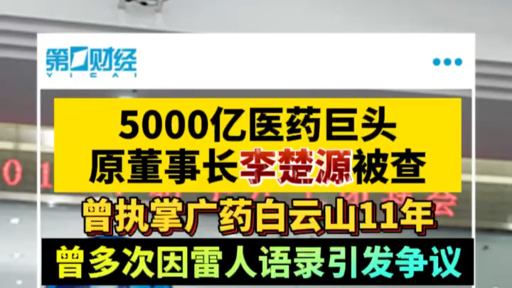 5000亿医药巨头原董事长李楚源被“双开”,被撤销荣誉称号,曾多次因雷人语录引发争议