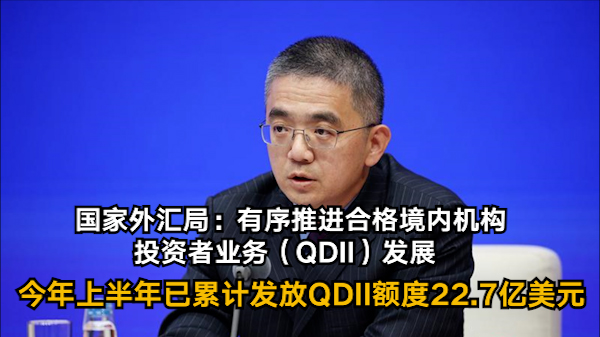 9月5日在国新办新闻发布会上,国家外汇管理局资本项目管理司司长肖胜表示,会同相关部门稳步扩大金融市场开放,完善境内企业境外直接上市资金管理,优化合格境外投资者制度,有序推进合格境内机构投资者业务(QDII)的发展。今年上半年,已累计发放QDII额度22.7亿美元。