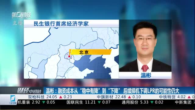 温彬:融资成本从“稳中有降”到“下降” 后续择机下调LPR的可能性仍大