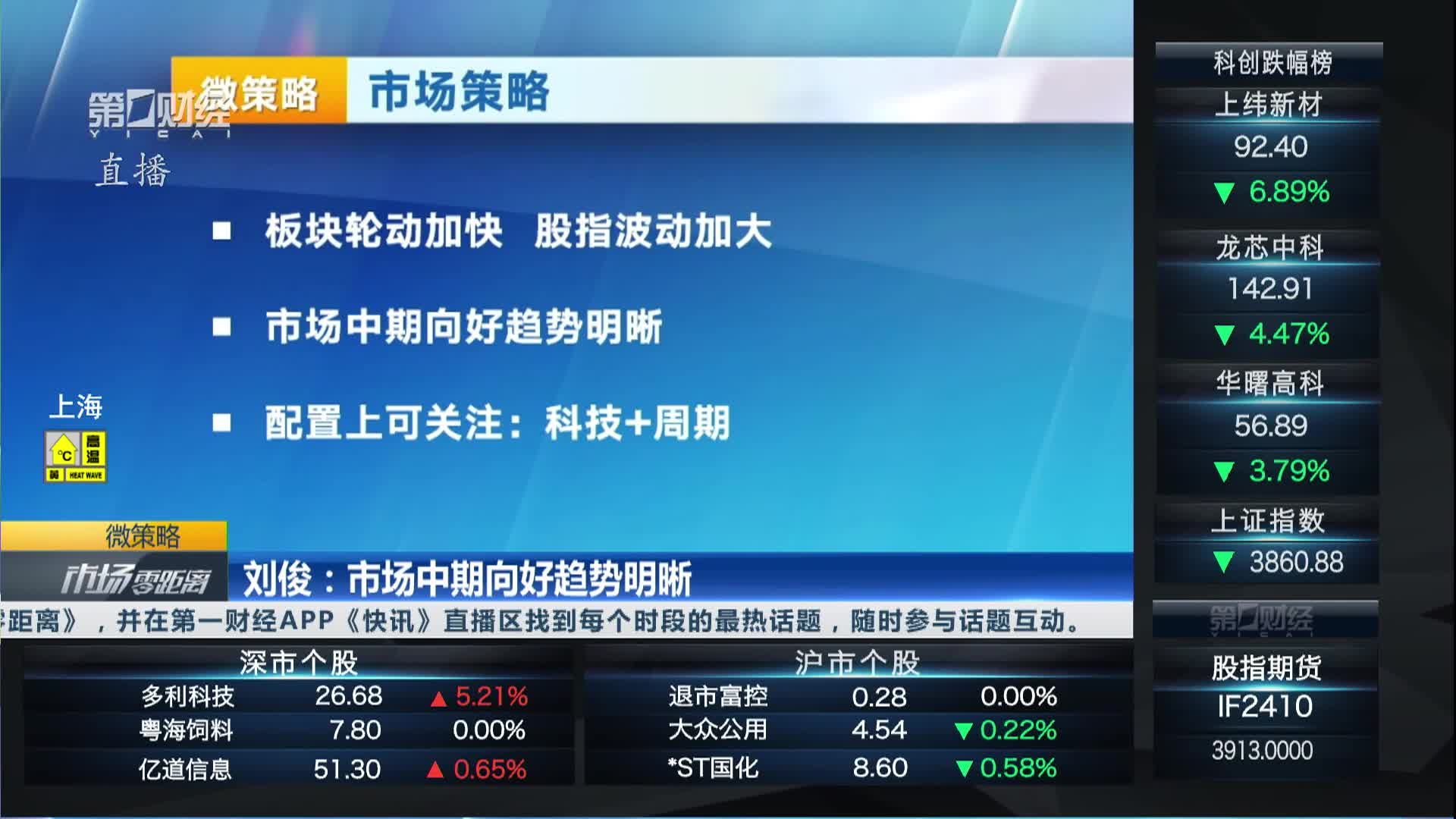 国联民生证券刘俊表示板块轮动加快,股指波动加大,市场中期向好趋势明晰,配置上可关注:科技+周期。