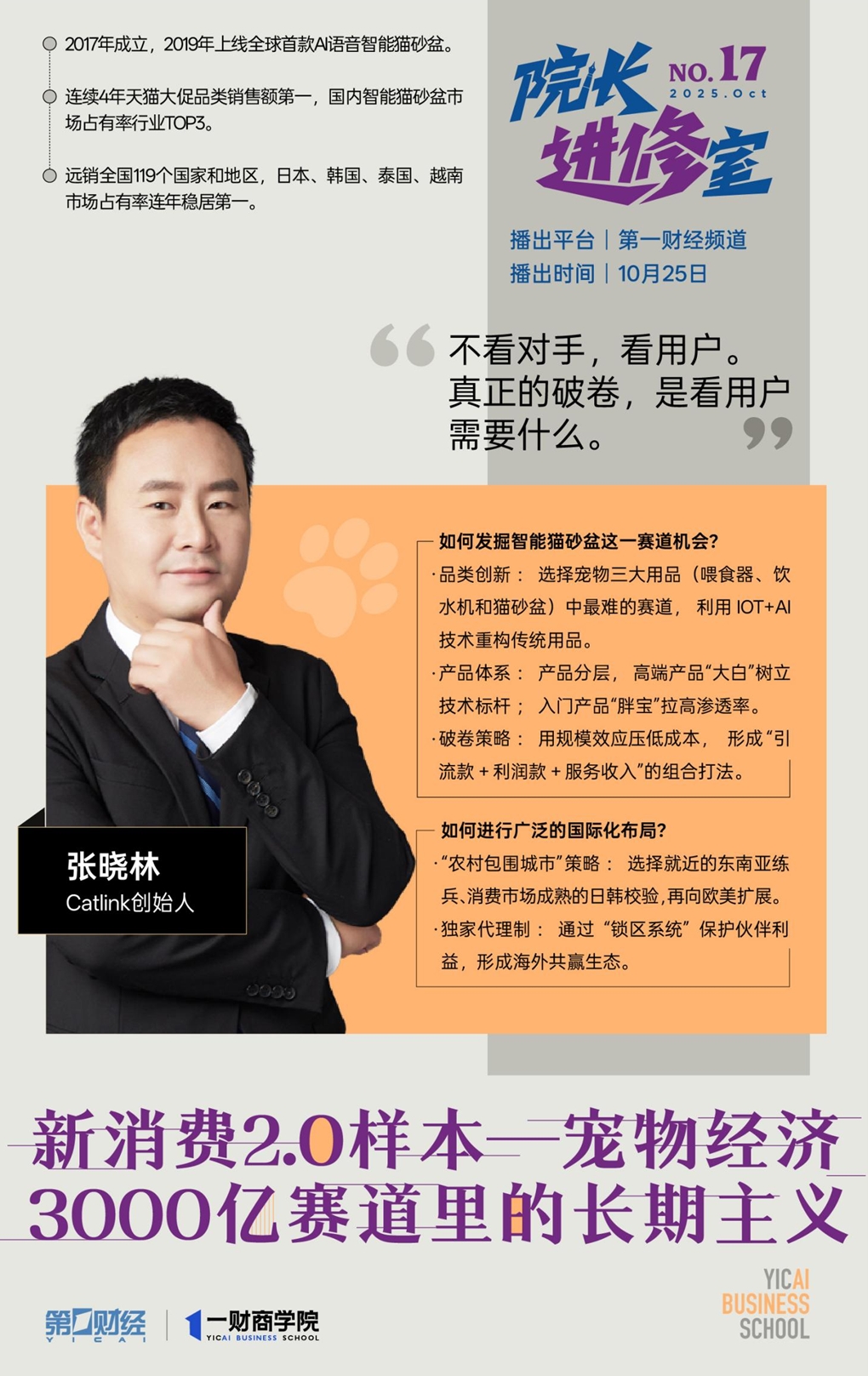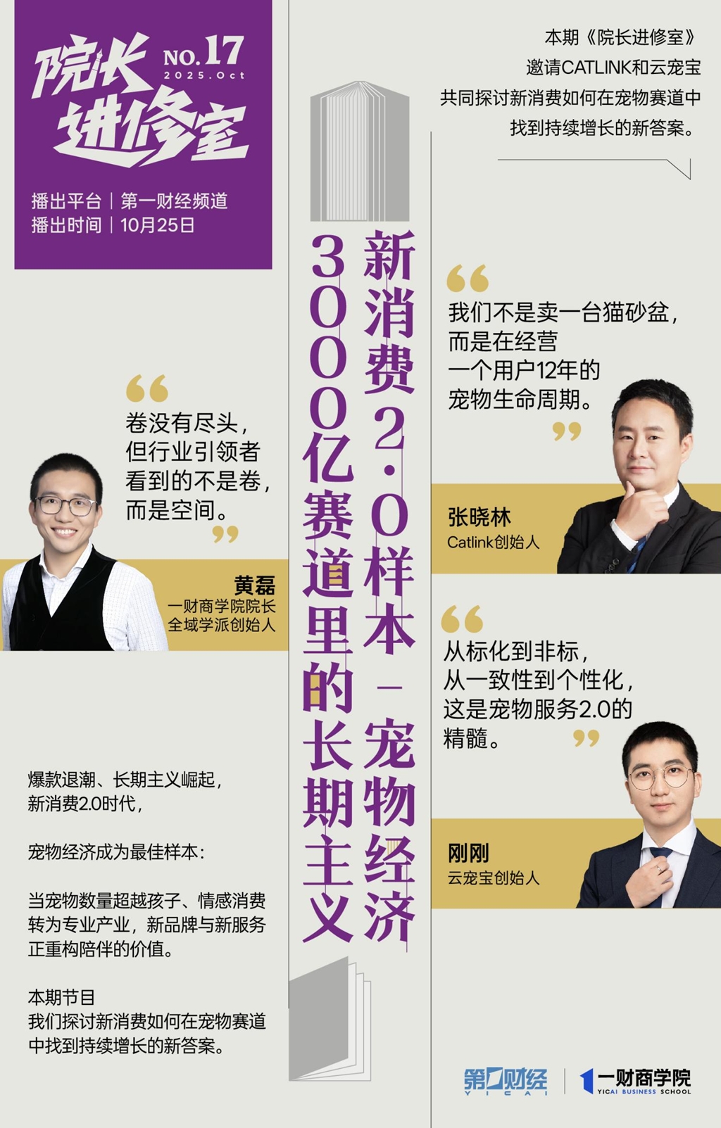 本期《院长进修室》分别邀请到了猫砂盆品牌CATLINK创始人张晓林和宠物健康服务平台云宠宝创始人刚刚。它们分别站在“硬件智能化”和“服务数字化”两端,共同构成宠物经济的“新消费2.0”样本:一个代表中国智造出海的技术创新者,一个代表服务体验革新的运营探索者。