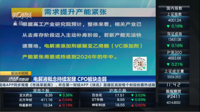 电解液概念持续发酵 CPO板块走弱 |板块牛熊榜