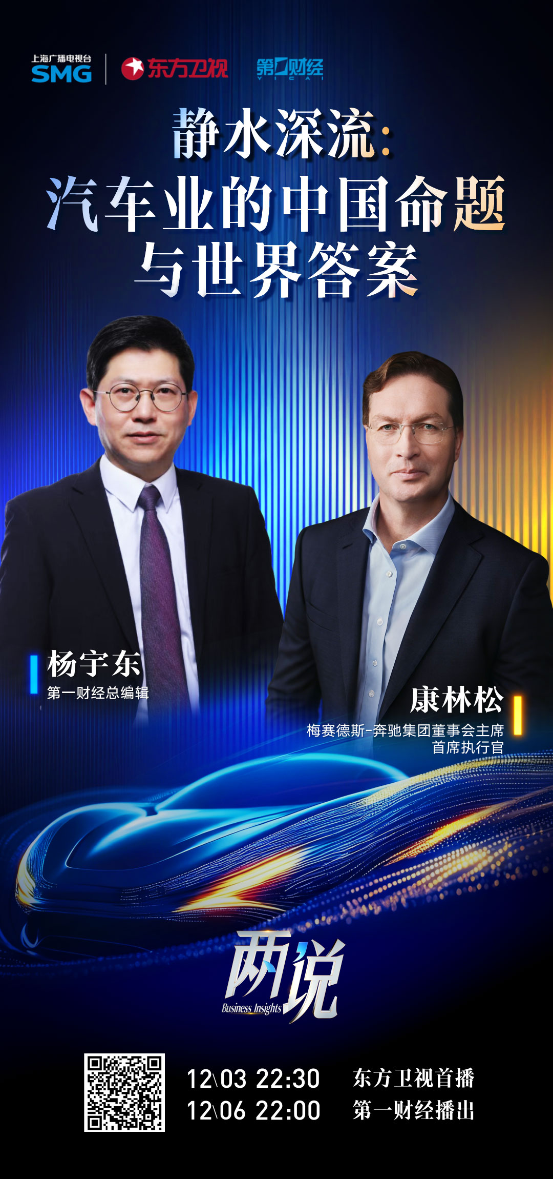 适逢全球汽车产业格局重塑的关键时刻,本期第一财经《两说》节目特别呈现杨宇东对话康林松的深度对话,聚焦“静水深流:汽车业的中国命题与世界答案”这一核心议题,通过第一财经总编辑杨宇东与梅赛德斯-奔驰集团董事会主席、首席执行官康林松的精彩对话,深入探讨中国汽车市场在全球汽车产业变革中的独特地位与深远影响。