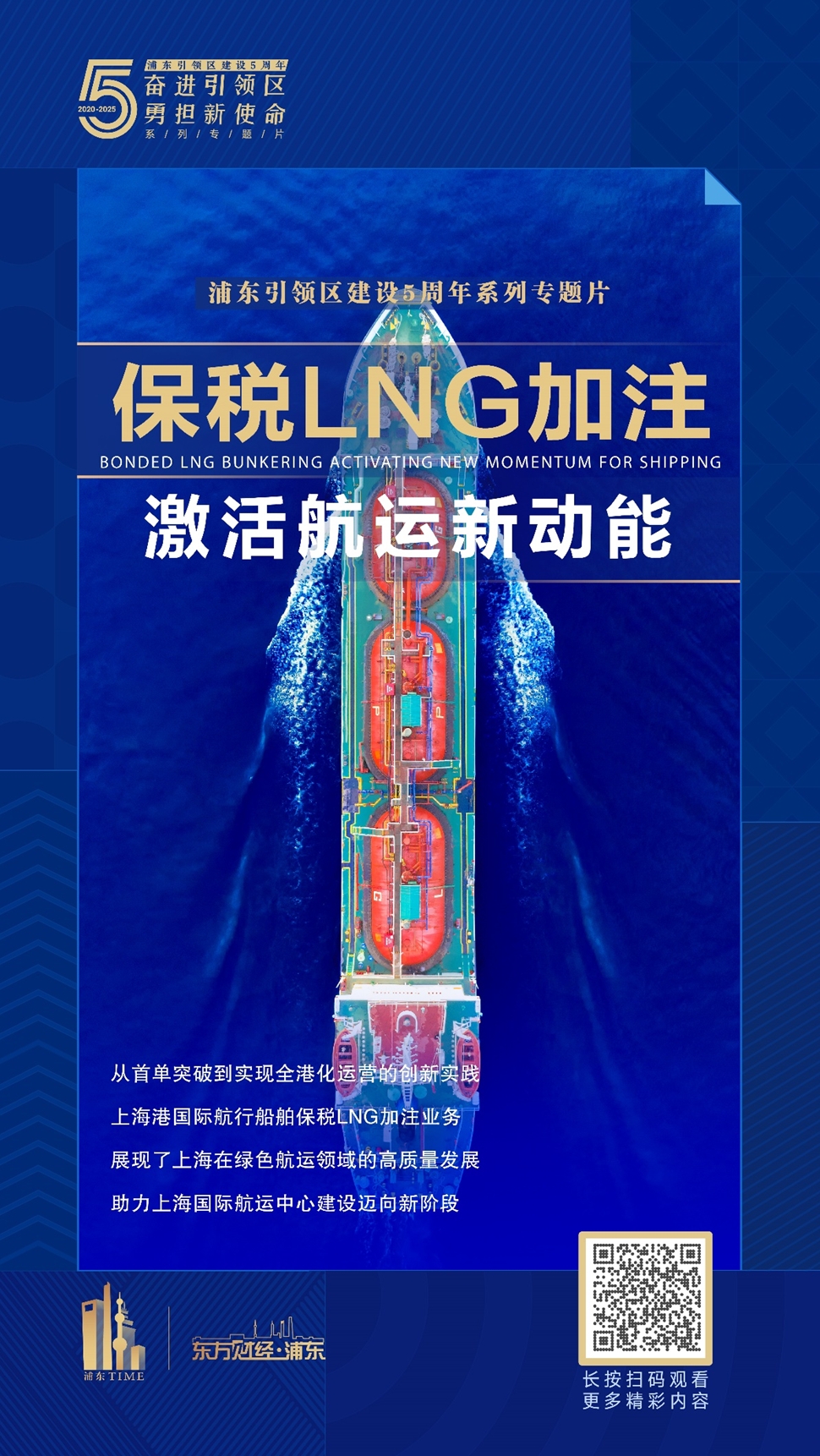 第八集《保税LNG加注激活航运新动能》,节目聚焦上海港国际航行船舶保税LNG加注业务,从首单突破到实现全港化运营的创新实践,作为保税燃料供应服务的重要组成部分,对丰富国际贸易中心功能、强化航运综合服务能力、提升产业链供应链辐射影响力具有重要意义,助力上海国际航运中心建设迈向新阶段。