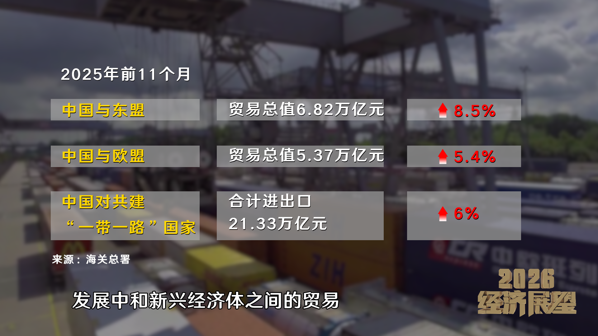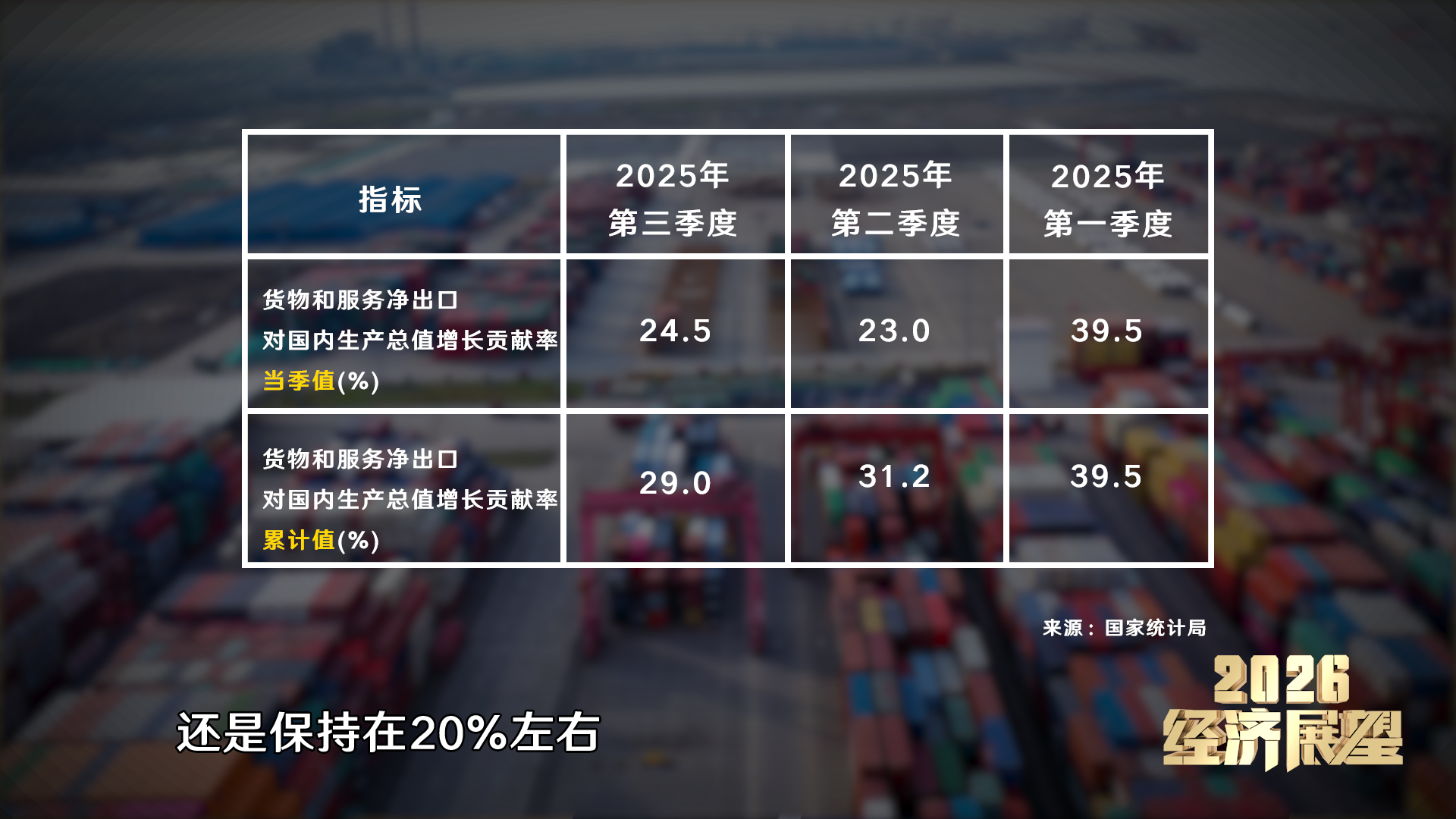 “十五五”时期,从国际看,国际力量对比深刻调整,单边主义、保护主义抬头,大国博弈更加复杂激烈。2026年是“十五五”开局第一年,面对深刻复杂变化的外部环境,2025年末中央经济工作会议提出,2026年要“更好统筹国内经济工作和国际经贸斗争”,“稳步推进制度型开放”,“有序扩大服务领域自主开放”,“鼓励支持服务出口”。2026年,外贸将如何拉动中国经济增长?《2026经济展望》,对话中国服务贸易协会副会长赵晋平。