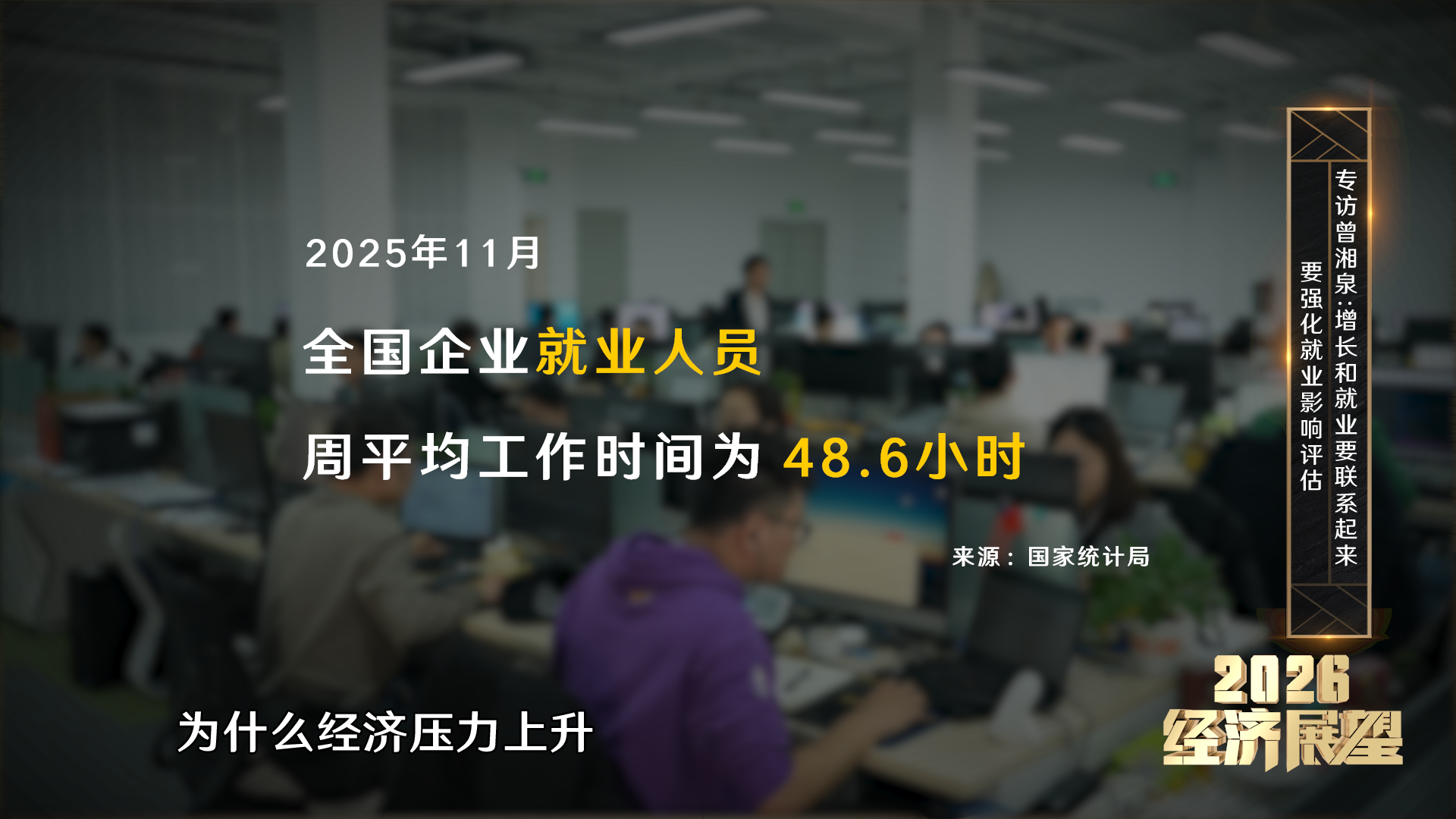 2025年12月召开的中央经济工作会议,对2026年经济工作作出系统部署。会议提出要着力稳就业、稳企业、稳市场、稳预期,其中,“稳就业”被放在首位。2026年是“十五五”规划的开局之年,《中共中央关于制定国民经济和社会发展第十五个五年规划的建议》多次强调就业问题,明确提出要“促进高质量充分就业,深入实施就业优先战略,构建就业友好型发展方式”。相关目标如何实现?《2026经济展望》,对话中国人民大学中国就业研究所所长曾湘泉。