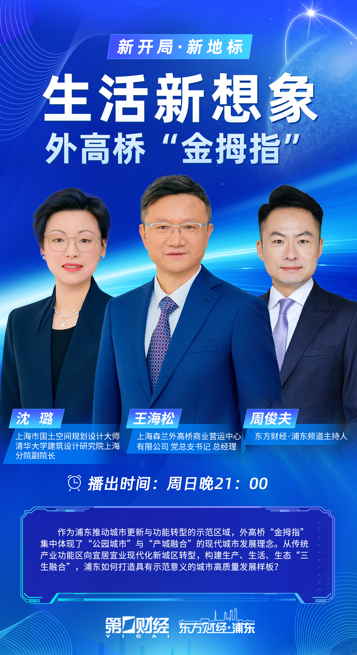 《引领区观察》栏目从2026年1月18日起推出5集系列节目,选取代表性物理空间,从“新地标”的视角对“十五五”期间浦东的发展进行展望。五集主题分别是:《城市新方向•东方枢纽》《开放新朋友•前滩国际经济组织集聚区》《生活新想象•外高桥“金拇指”》《文化新体验•上海大歌剧院》《产业新能级•人工智能小镇》。每集25分钟,在第一财经频道和东方财经•浦东频道周日晚黄金时间同步播出。