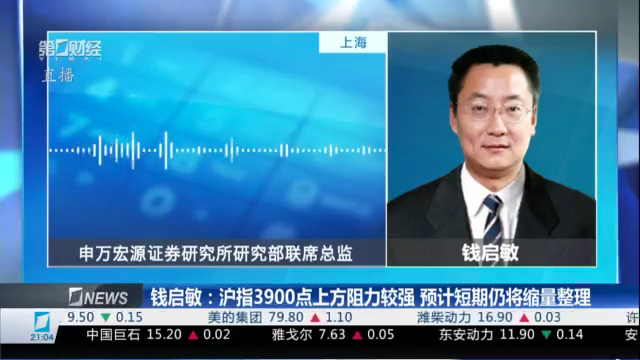 钱启敏:沪指3900点上方阻力较强 预计短期仍将缩量整理