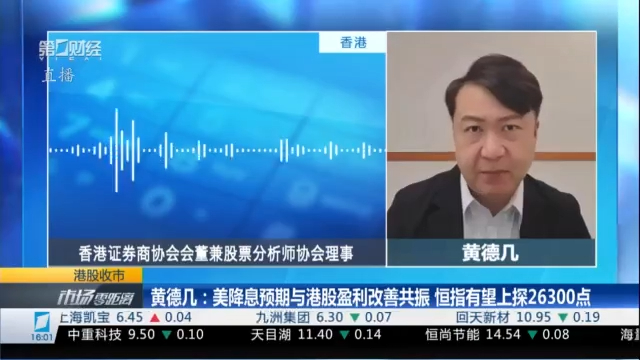 香港证券商协会会董黄德几:美降息预期与港股盈利改善共振 恒指有望上探26300点丨港股收市