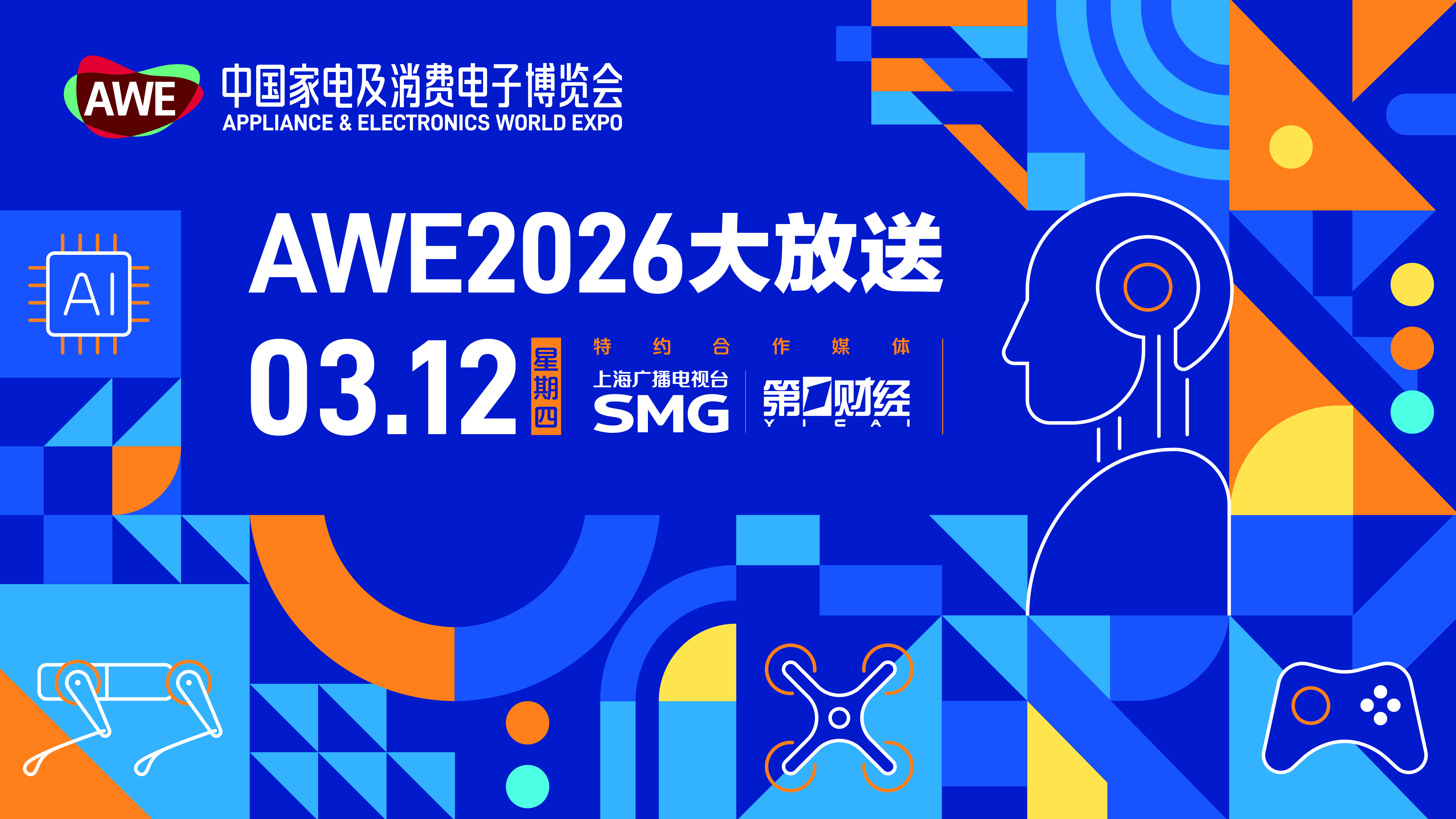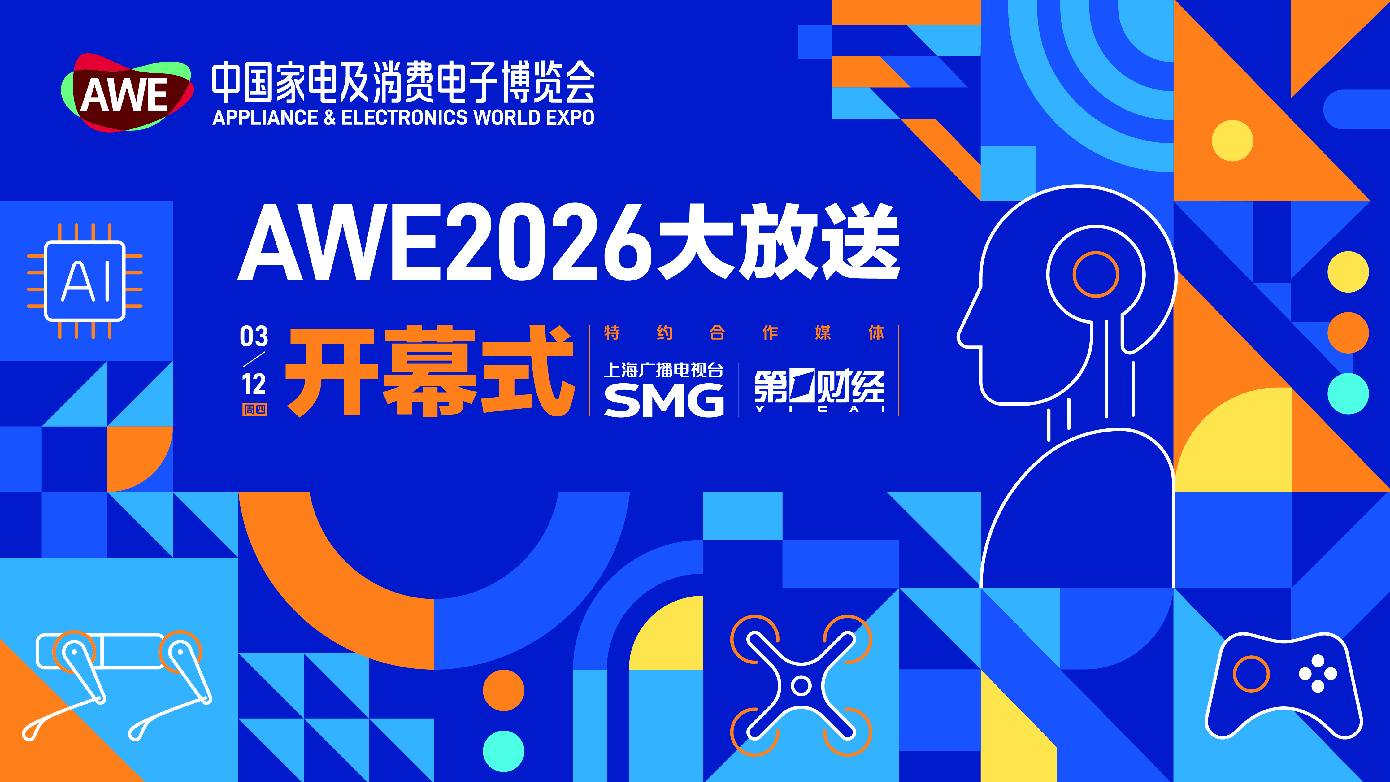 3月12日-3月13日,AWE2026大放送汇聚行业领袖、企业高管与专业投资人,聚焦硬件革新、场景创新、智慧出行、健康守护等核心主题,带来深度前瞻对话。同步带来四足机器人、外骨骼机器人、AR 眼镜、全景无人机、全场景 AI 生态、智慧出行、养老机器人、AI 养宠等前沿展品的探展直击,全方位呈现AWE2026 的科技魅力与创新活力。